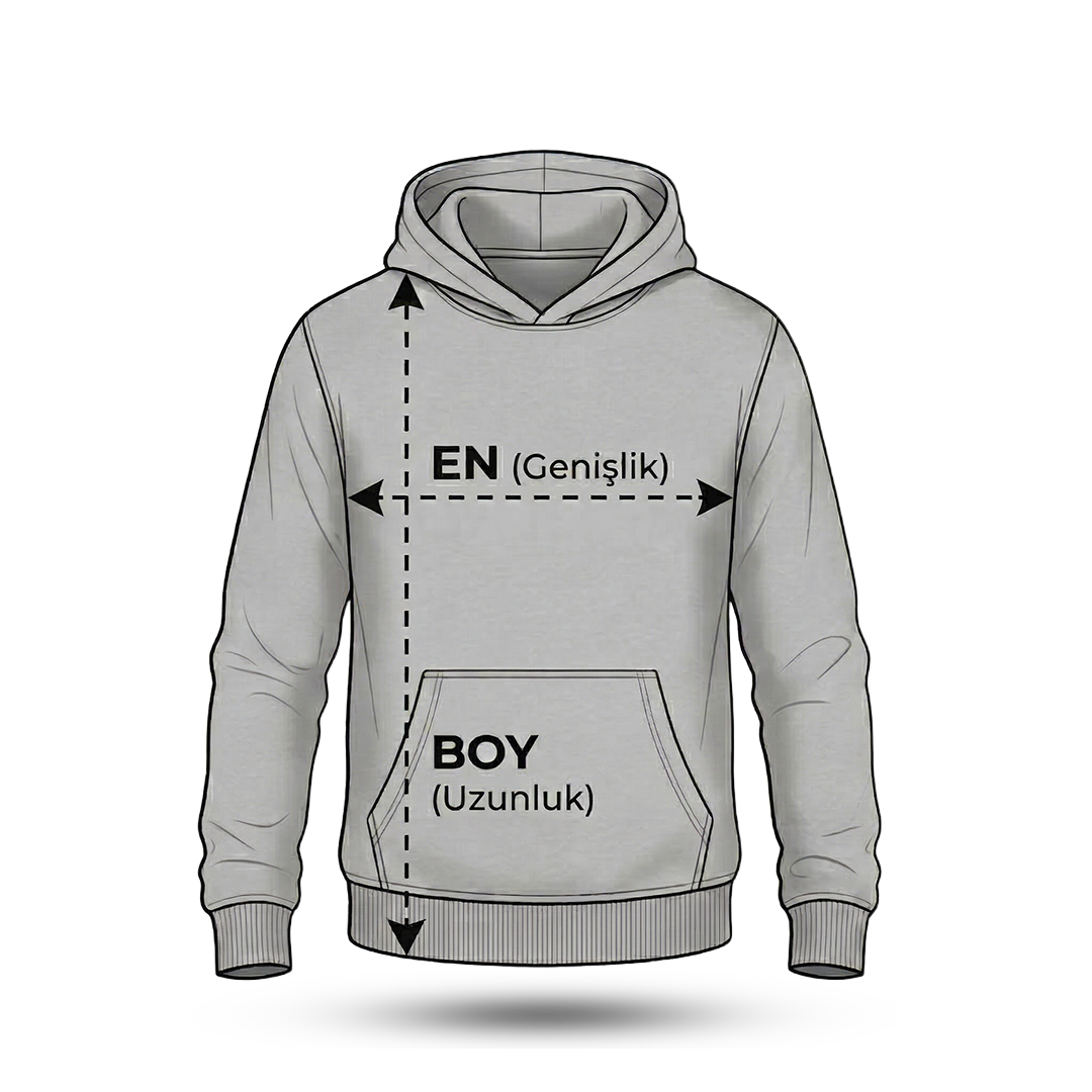 Fermuarlı ürünlerde fermuar üzerine baskı yapılmaz. Tasarımın fermuar hattına denk gelmesi durumunda sipariş baskıya alınmaz. Görselinizi göğüs veya sırt bölgelerine konumlandırın.